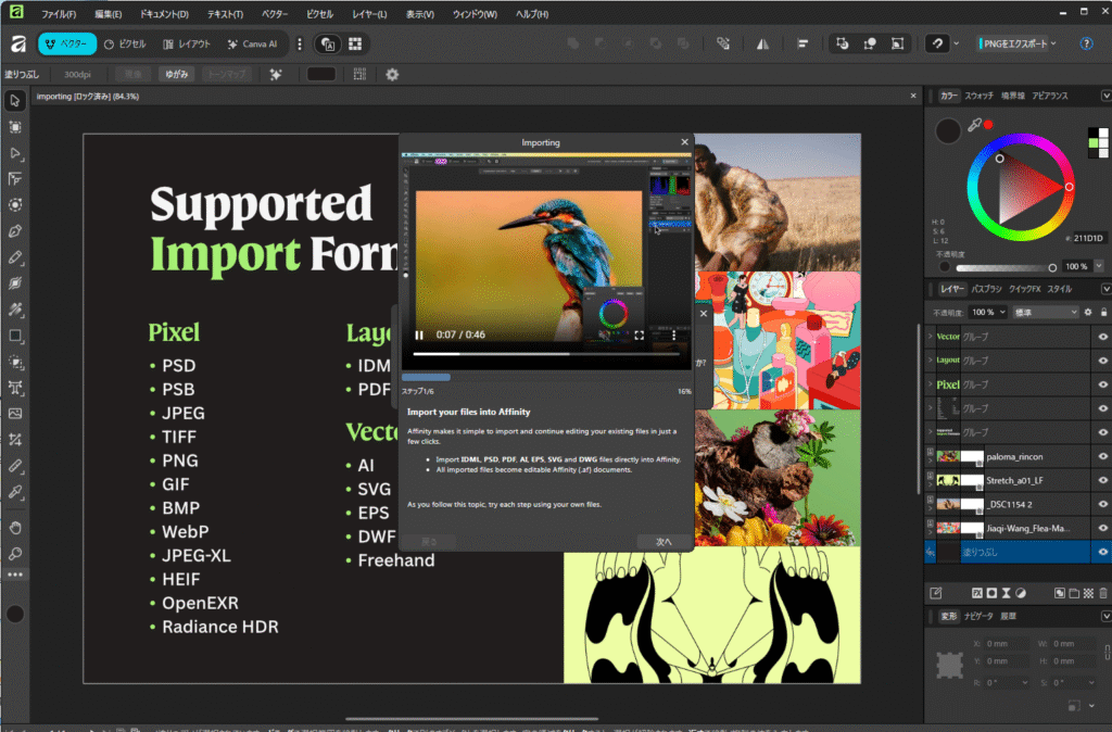 Affinityの大きな武器のひとつがファイル互換性の広さです。