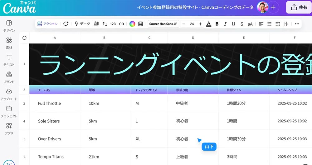 Canvaの中でフォーム設置からデータ管理まで完結するんです。