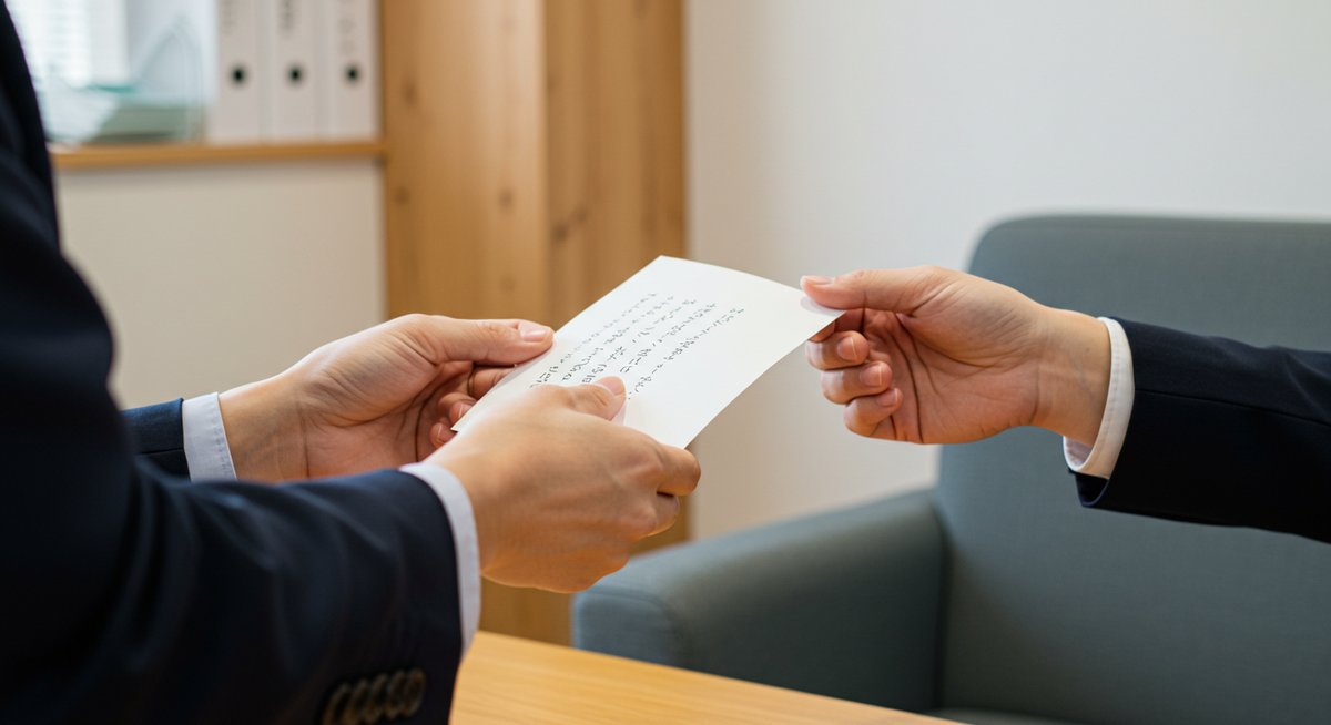 対面で渡す場面は、会話が終わる直前やサービス提供直後が適切です。メールやLINEでは、内容が伝わった直後に送ると自然です。相手が忙しい場合は短く、時間的余裕があるなら少しだけ情報を加えるなど、状況に応じて長さを調整してください。
