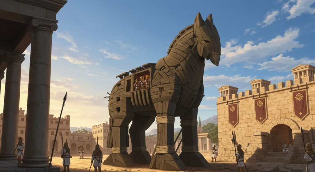 ホメロスから考古学までをつなぎ、トロイの木馬がどう語り継がれてきたかをやさしくたどります。物語の流れや主要人物、神々の関与をわかりやすく整理して紹介します。遺跡発掘や美術・文化への影響、現代での使われ方まで触れ、読み終えると全体像がつかめます。