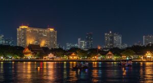 王宮は早めに閉まりますが、ワット・アルンは夕暮れの景色とライトアップが美しいため、夕方に合わせて訪れると夜景が楽しめます。ワット・ポー周辺で夕食を取ってから夜の渡し舟でワット・アルンへ渡る流れが動きやすいです。