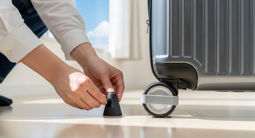スーツケースのストッパーを自作する方法を、転がりを止める原理から具体的な代用品の作り方まで紹介します。摩擦で止める素材選びや着脱のコツ、安全面の注意点も整理。いざという時にすぐ使える対策が分かります。 -