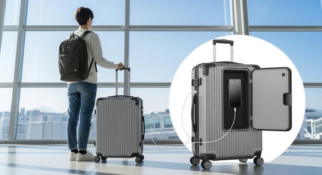 USBポート付きキャリーケースの仕組みを、内部配線とモバイルバッテリー収納から分かりやすく解説します。出力規格やフロントオープンの違い、静音キャスターと拡張機能の選び方、おすすめ7選と機内持ち込みルールもまとめます。 -