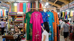 ダナンの活気を象徴するハン市場の2階には、数多くの小さな仕立て屋が集まっています。市場内で購入した生地をそのまま持ち込んで仕立ててもらうことも可能で、ローカルな雰囲気を楽しみながら、非常にリーズナブルにワンピースを作ることができます。