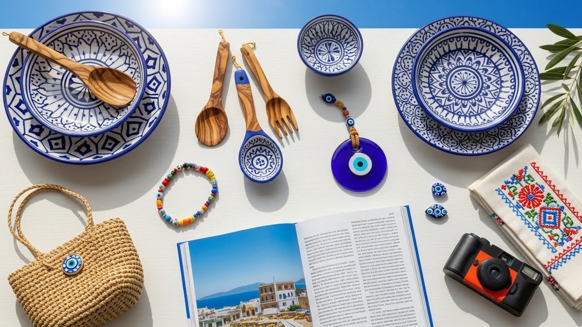 ギリシャらしい素材や色使いが感じられる品を中心に紹介します。選びやすく、渡したときに喜ばれるものをピックアップしました。買う場所や予算を意識して選ぶと失敗が少ないです。