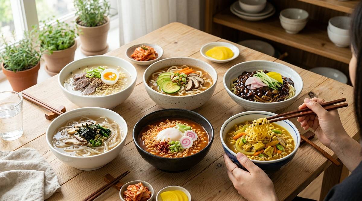 また、韓国独自の「チャジャン(ジャージャー麺)」ベースも外せません。こちらは辛さではなく、チュンジャンと呼ばれる黒豆味噌の香ばしさと甘みが特徴です。スープがない汁なしタイプが多く、お子様からの人気も絶大です。さらに、醤油ベースのものは、野菜の甘みや肉の旨味がダイレクトに伝わるため、スープを最後まで飲み干したい派の方に適しています。