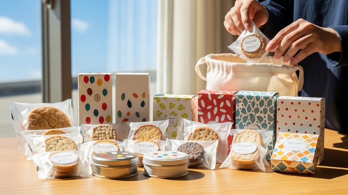 小袋を数種類混ぜるとバラエティが出て喜ばれます。箱に入れるときは缶や硬い箱を使うと輸送中に潰れにくくなります。