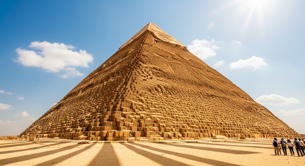 ピラミッドは石を積み上げるだけの構造に見えますが、寸法管理、整列、傾斜角の設計、内部の通路や王室の配置などで非常に高い精度が求められました。ギザの大ピラミッド(クフ王のピラミッド)は基底の一辺が約230メートル、建設当時の高さは約146メートルと推定され、その精度は現代の測量でも驚かれるレベルです。