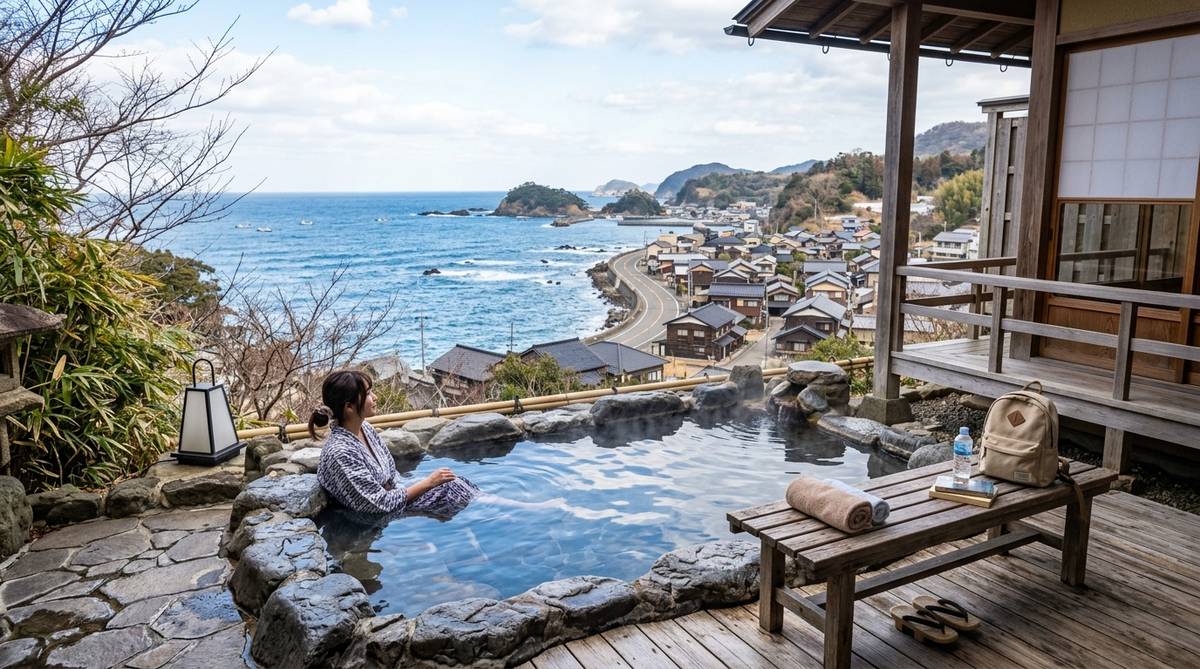 雪が降らないからといって、冬の温泉地が暖かいとは限りません。特に関西の沿岸部は、強い海風が吹くため、体感温度が予想以上に低くなることがあります。日中の陽だまりは温かくても、日が沈むと急激に冷え込むのが冬の旅行の注意点です。