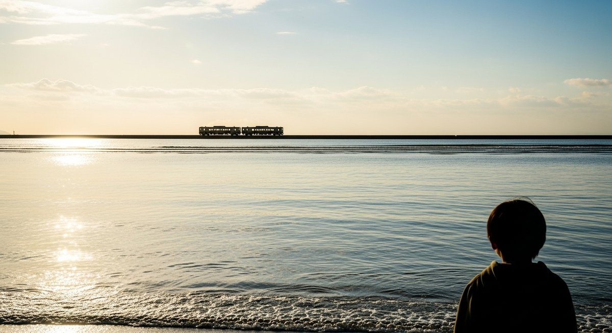 ノスタルジーは、単に過去を懐かしむだけでなく、失われてしまった純粋さや、大切にすべき精神的な価値を思い出させてくれる力を持っています。海の上を走る電車の風景は、私たちが忙しい日々の中で置き去りにしてきた「大切な何か」を象徴しており、それを再確認することで、心が温かくなるような安心感を得られるのです。