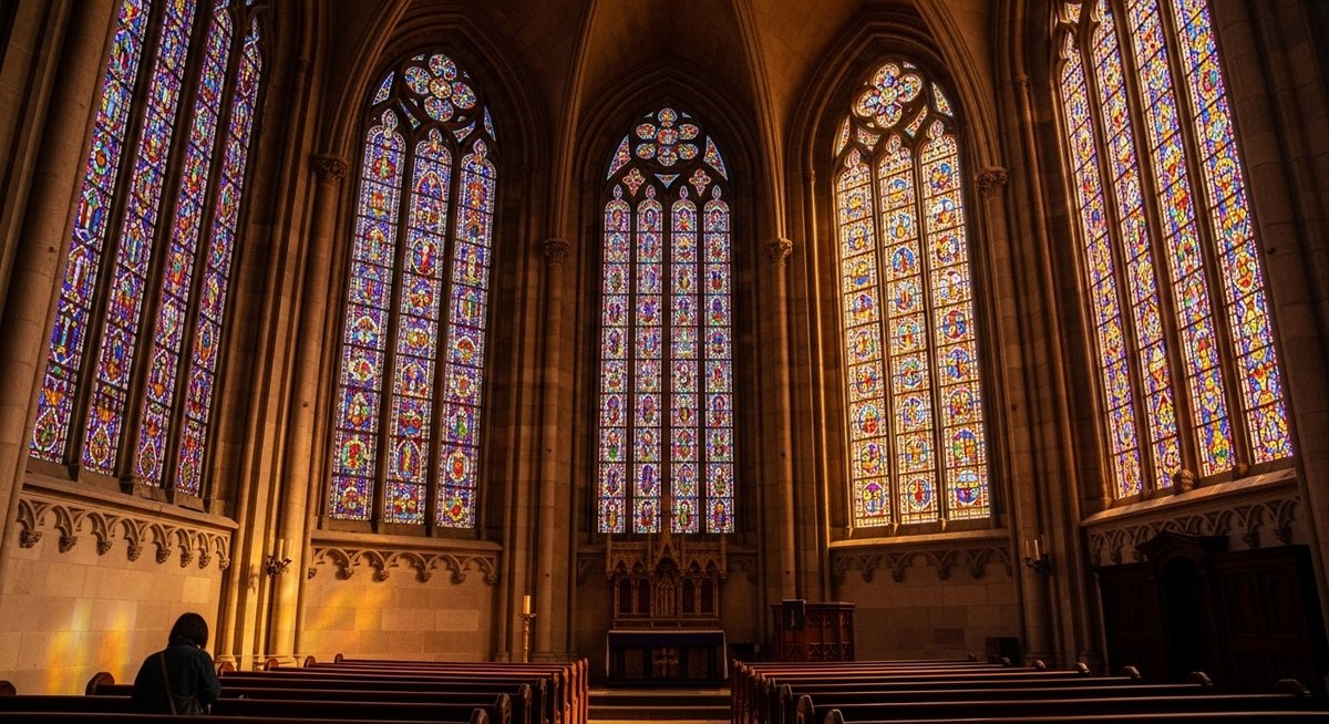 教会を訪れる時間で窓の見え方は大きく変わります。午前の直射光は鮮明な色を引き立て、正午過ぎは均一な光で細部が見やすくなります。夕方の斜光は深みのある色彩を生み、内部にドラマチックな陰影を作ります。