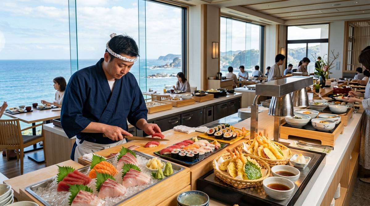 東海地方には、海を愛し、魚を知り尽くした人々が営む素晴らしいホテルが数多く存在します。目の前に広がる雄大なオーシャンビュー、職人の手さばきが光るライブキッチン、そして何よりも、港から届いたばかりの命の恵み。それらを「食べ放題」という最高の形式で堪能できるのは、この地を訪れる旅人だけに許された特権です。